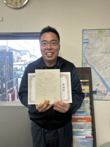 1年間、会社に貢献された方に感謝状が贈られました😊